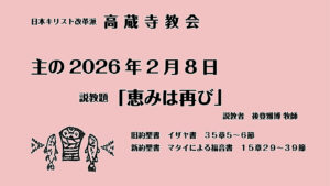 2026年2月8日の礼拝説教動画をアップました
