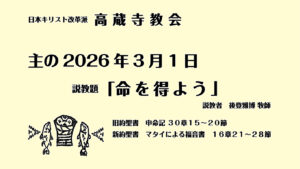 2026年3月1日の 礼拝説教をYouTubeにアップしました。